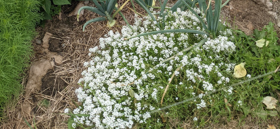 Annual. Free-flowering ground cover, blossoming from late spring well into fall with a fragrance like fresh-mown hay. Cascading habit makes it excellent for windowboxes or terrace edges. 4" dwarf white. Formerly known as Little Gem, predates 1890. Widely recognized nectar source for beneficial insects. Start seed in cool place 6 weeks before setting out. Needs light to germinate. Transplant seedlings 4–8" apart. Easy to grow, likes sun, tolerates some shade. To extend their season, shear plants halfway back four weeks after bloom. Resistant to frost, will tolerate temperatures below 25°. About 2,370 seeds/g.