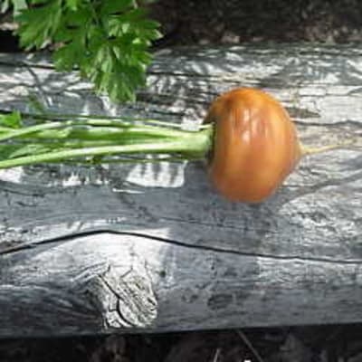 Daucus carota (55 days) Open pollinated. Parisian heirloom. Round 1½" deep orange carrot. Harvest young and tender; enjoy cooked for sweetness and creamy texture. Easy in clay soil.