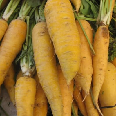 Daucus carota (72 days) Open pollinated. Large-shouldered 7-8" yellow carrot with greenish-yellow core. Performs well in diverse soil types.