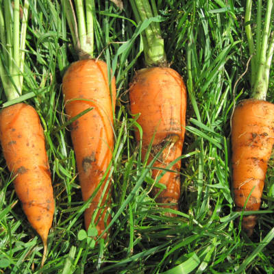 Daucus carota (85 days) Open pollinated. A stalwart storage carrot whose flavor improves with time. Also good for fresh eating and juicing. 7–9" heavy cylindrical roots.
