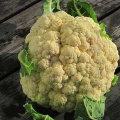 Brassica oleracea (botrytis group) (93 days) F-1 hybrid. Very large upright plants set dense 2-4 lb attractive white domed heads. Tender with very good flavor.
