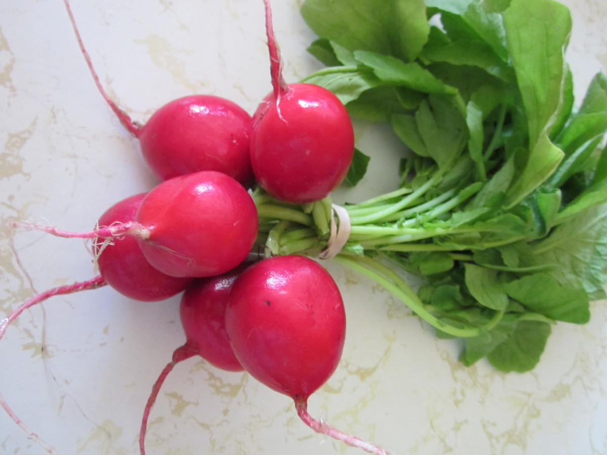 Vibrant scarlet skins with crisp sweet white flesh. Showed excellent field-holding quality in our trial and had the sweetest flavor with a mild tang. All 10 round slightly oval specimens in the sample were acceptable, 9 of them sufficiently uniform to be marketable. A higher yielder and stands heat better than many selections. Short tops.