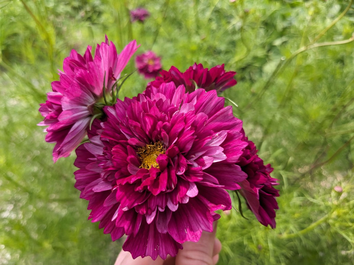 Annual. Stunning dark maroon semi-double to fully double flowers have a light picotee edge. Not the earliest to bloom but well worth the wait. Temporarily set back by excessive rains but makes a good recovery. Strong stems with attractive ferny foliage grow 2–3'. Long-lasting in a vase. About 125–150 seeds/g.