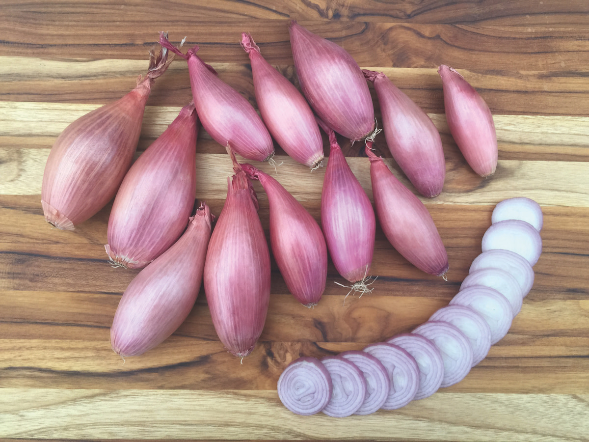 This éschalion—also called bottle or banana shallot—has lustrous pinky-bronze skin and elongated 4–5" bulbs that are easy to peel and slice. Tender, sweet and slightly citrusy when raw, and with butter in a skillet they caramelize as perfectly as the golden crust of the fanciest crème brûlée. Easy to grow—a great option for market growers and home gardeners alike. Stores beautifully into April. In 2021 this became the first shallot ever to receive an AAS Winner designation.