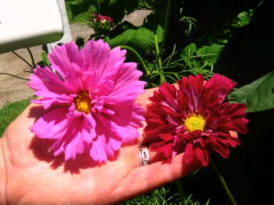 Annual. These double and semi-double award-winning flowers gain lots of attention with their unique puffy blooms in shades of pink, plum and white. With sturdy stems, excellent for cutting, and prolific bloom until frost, this superior mix makes garden visitors do a double take. 4' tall. Annual. ~140-195 seeds/g.
