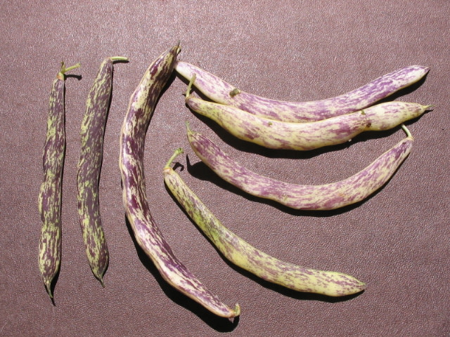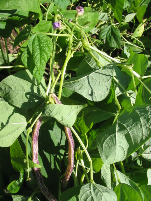 Also known as Dragon’s Tongue. Tasty attractive 19th-century heirloom hails from the Netherlands. Compact stocky bushes bear abundant purple-violet flowers followed by flat 6" creamy yellow pods mottled with purple tiger stripes. Sunlight intensifies color, so plant rows farther apart than normal bean spacing so interior sets become vivid. Crisp, stringless and amazingly juicy when eaten fresh. Cook or market promptly after picking; turns rubbery and loses snap when stored. Not recommended for freezing. Loses purple coloration in cooking. Seed purplish brown with blue stripes.