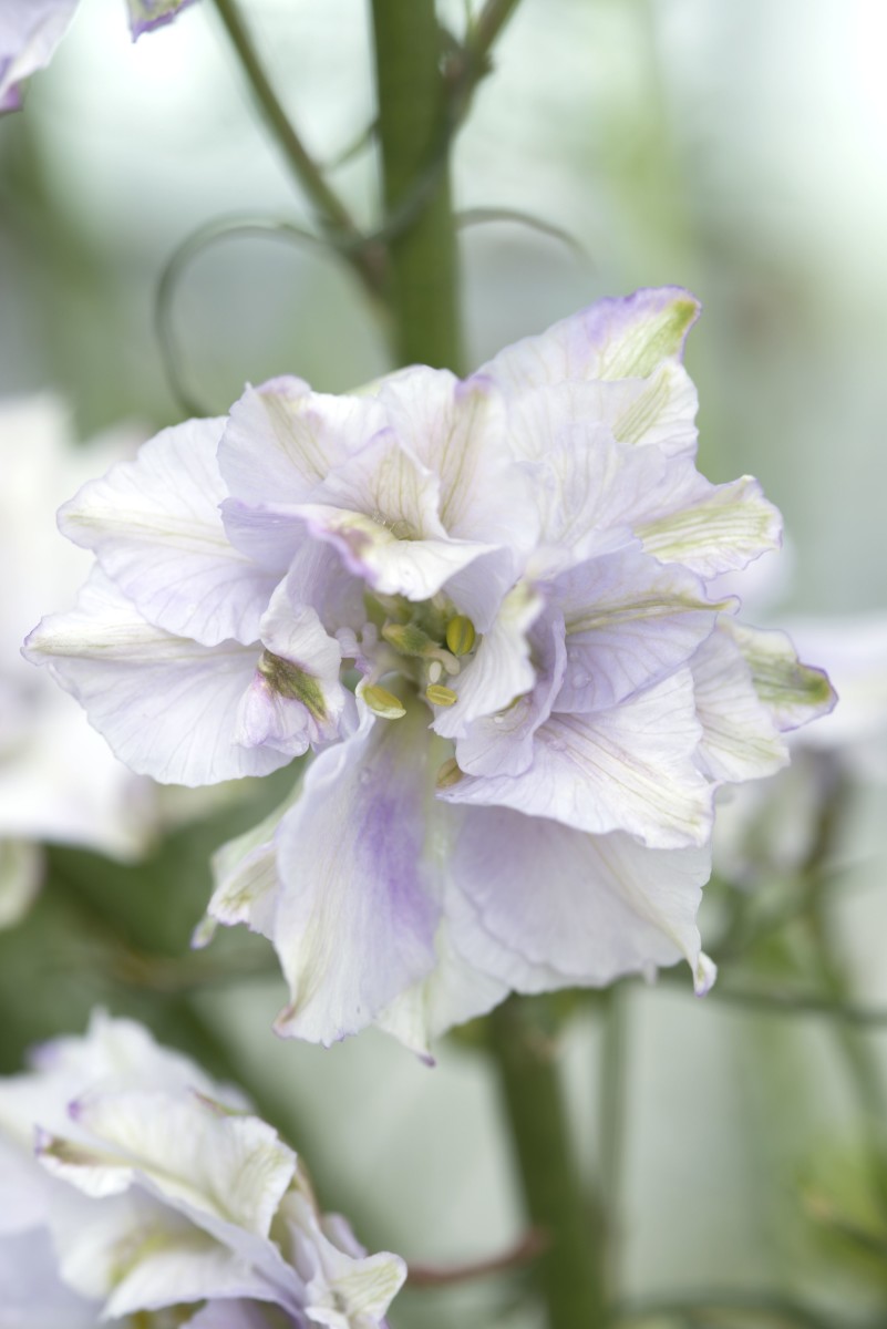 Annual. For that kind of cloudy day on the Maine coast when subtle “cool” colors come into their own and the grey chill invites you to curl up with a cup of Earl Grey tea. This pearly lavender-grey larkspur on tall stalks fits nicely into such an atmosphere, its delicate shades revealing their shimmering clarity. Maybe enjoying them in a bouquet is your cup of tea. Upright 3–4' tall plants. ~330 seeds/g.