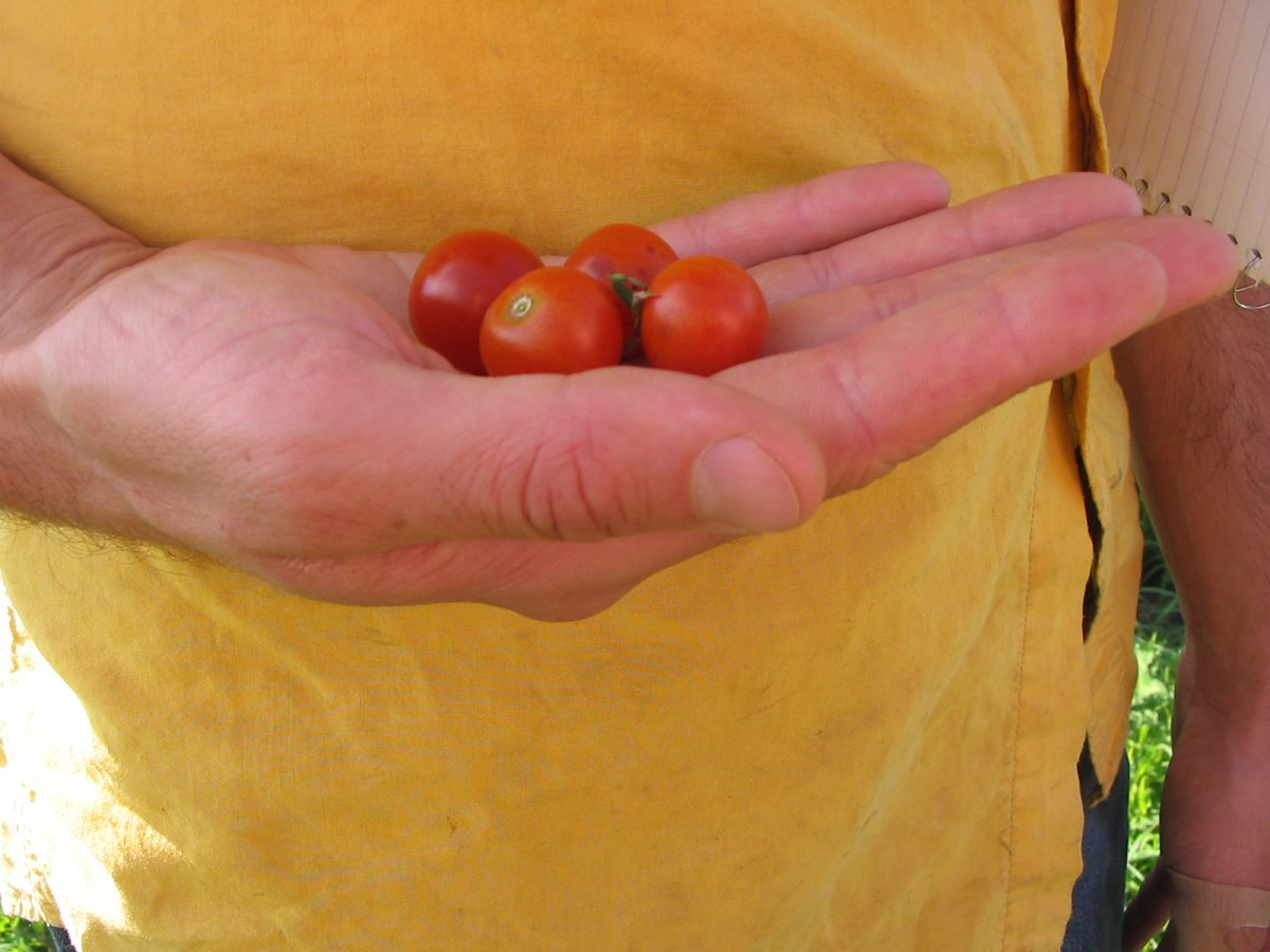 Indeterminate. Also known as Sugar Lump, and of German origin, but not an heirloom as we once believed. Introduced by Ernst Benary in 1950-51. A parent of the famous hybrid Sweet 100. Produces the kind of rich sweet deep red 1"+ cherries that you will want to pop into your mouth in profusion while you bask in the garden sunshine. The large plants need staking and will bear till frost. The fruits taste so good that we overlook their annoying tendency to crack.