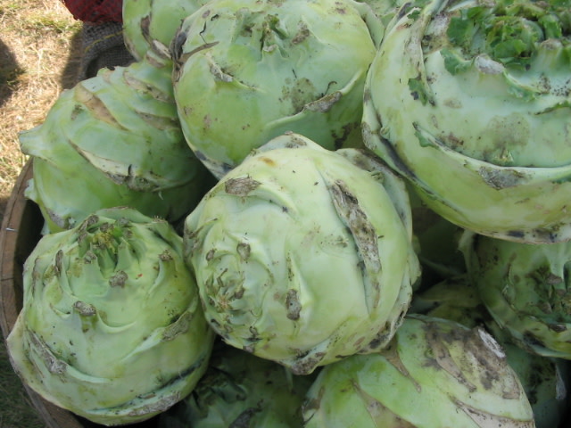 These get enormous, regularly exceeding 10" in diameter and 10 lb. Unlike other kohlrabi, this Czechoslovakian heirloom doesn’t get woody even at such a large size. A root cellar staple, its crisp white mildly tangy flesh will add zest to your meals while you await the first edible greens of spring. Staffer Emily Skrobis praises Gigante: “It tastes alive in the dead of winter” and reports that her kohlrabi and carrot slaw is always a hit at potlucks.