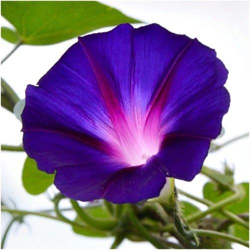 Annual. This variety could be considered the seed that sprouted a thousand seed savers. When Diane Ott Whealy’s grandfather gave her seeds of this stunning Bavarian heirloom and died shortly thereafter, she felt responsible for keeping the variety going. With her then-husband Kent Whealy, she cofounded Seed Savers Exchange, which has since grown to a collection of more than 20,000 varieties. This foundational flower deserves to be saved: beautiful glowing rich deep purple bloom with a glowing magenta center and dark 5-pointed star pattern. Quite the showstopper. Very similar to Kniola’s Purple, but with a later initial bloom time. Climbs at least 8–9' with trellising, and will self-sow but not aggressively. Seed purchased from Diane’s son.