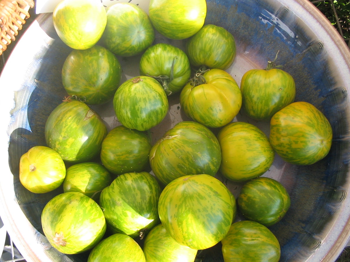 Indeterminate. A most unusual beast in the tomato menagerie, this zebra starts out green with darker green stripes, softening and blushing yellow and apricot when it ripens. It might have remained a mere curiosity but for its delicious sweet rich flavor. Small-medium 4–5 oz fruits are emerald green inside. Perfect exteriors hold up under adverse conditions and don’t crack. “The perfect salad tomato,” says Anne Elder.