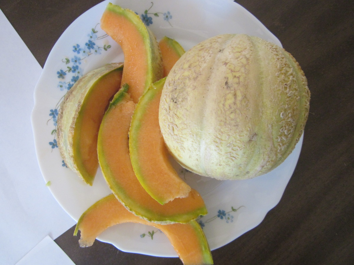 This story begins when former Fedco staffer Heron Breen heard tell of a “lost” disease-resistant Cornell-bred melon that embraced the essence of the Black Sea–region heirloom Collective Farm Woman. Curiosity and persistence prevailed, and a small seed sample from the scant stock of the breeder delivered a treasure we can now all enjoy: round-to-oblong 2–3 lb fruits with haunting aromatics and white flesh that embodies the texture, flavor and redolence of the finest pear. If picked at early slip with a rusty brown-green rind bleeding to gold, flesh is sugary rich and dense, almost crisp. Left on the vine until near full gold, it becomes smooth, sweetly melting. High yielding, even in the melon-challenging (to put it mildly!) 2023 season. Named Grusha—meaning ‘pear’—to honor its women-stewarded heirloom parentage. 2023 Fedco introduction.