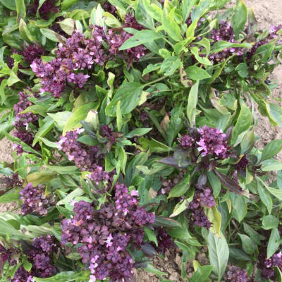 Ocimum basilicum Open pollinated. Vigorous mulberry-tinted basil with anise fragrance makes a highly decorative tall bushy plant. Slow to bolt.