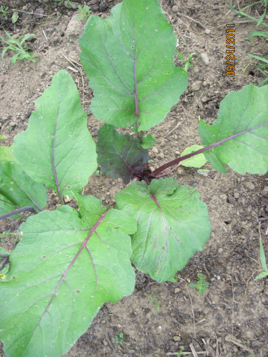Chinese specialty vegetable also known as Purple-flowered Choy Sum, meaning ‘vegetable heart’ or ‘flowering stem’ in Cantonese. The flower stalks, leaf stalks and buds are deep purple, with color intensifying in cold weather. Grows vigorously in fertile soil, producing up to forty pencil-thick flowering shoots, though much skimpier on poor ground. Shoots and leaves have a pleasant mild mustardy flavor good for stir-fries, braising and soups. Also good for microgreens. Grows best in cool weather, ideal when sown in late summer for a fall crop or in fall for an early winter crop in warmer climates. Hardy to 23°. May bolt prematurely in midsummer heat. ~4,500 seeds/oz.