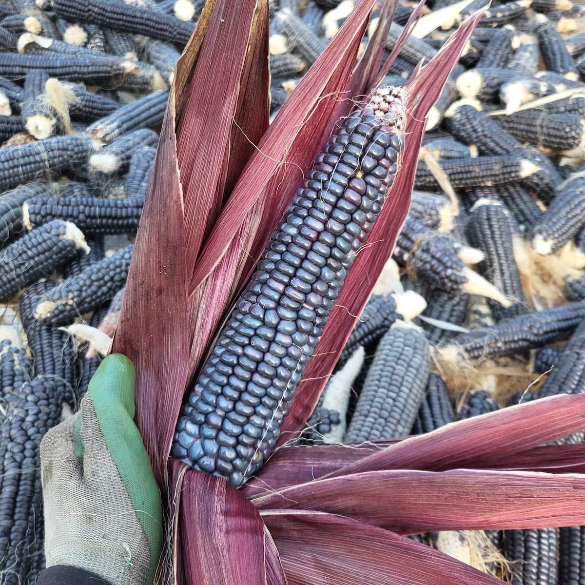 Precursors of this strain have been raised continuously for 800 years on the mesas of northern Arizona and are used by the Hopis to make ceremonial piki bread. Our seed is currently being grown in upstate NY on tall 7–9' plants which produce large 8–10" ears of mostly 12 rows. The beautiful deep flint kernels are remarkably doughy even when fully dry and are easily ground into flour. Very drought-tolerant, with a long taproot. Dick Burnham of Talking Crow Organic Farm in western Massachusetts reports it is not just for flour, it is good to eat, “crunchy, corny and wholesome.”