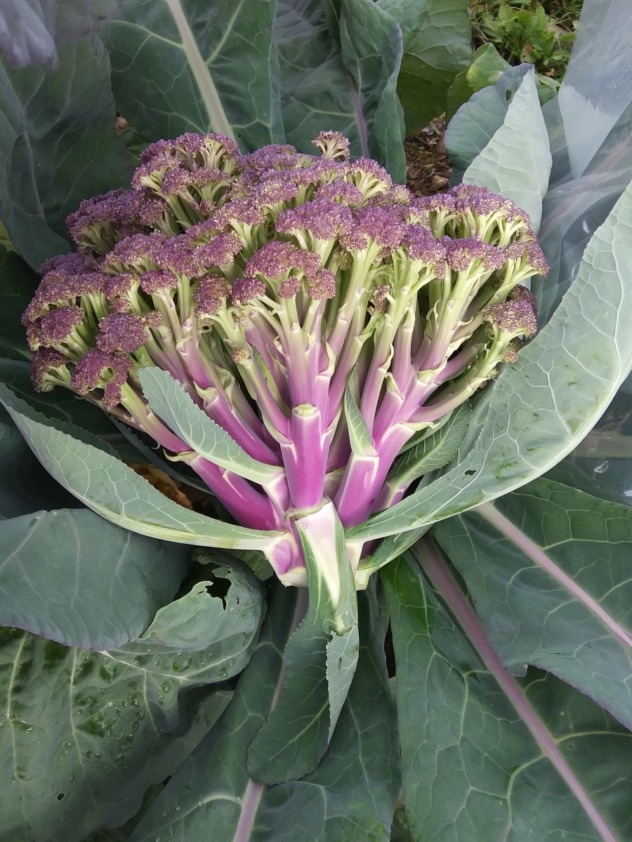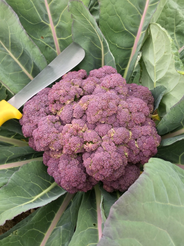 Historian and seed catalog enthusiast Jill Lepore, writing in The New Yorker, called our old description for this variety “bumptious [and] baffling.” But a dose of purple prose seems particularly appropriate for this broccoli-cauliflower blend that boasts large broad easy-to-harvest purple heads held high on tall bushy plants. Excellent for a fall harvest, Jacaranda can be cut as a full tight head, or left to open for floret or “stick”-style harvests. Colorful florets and sweet tender stems are superb raw or lightly steamed. We’ll take bumptious and baffling over bland and boring any day, and Jacaranda is anything but the latter.