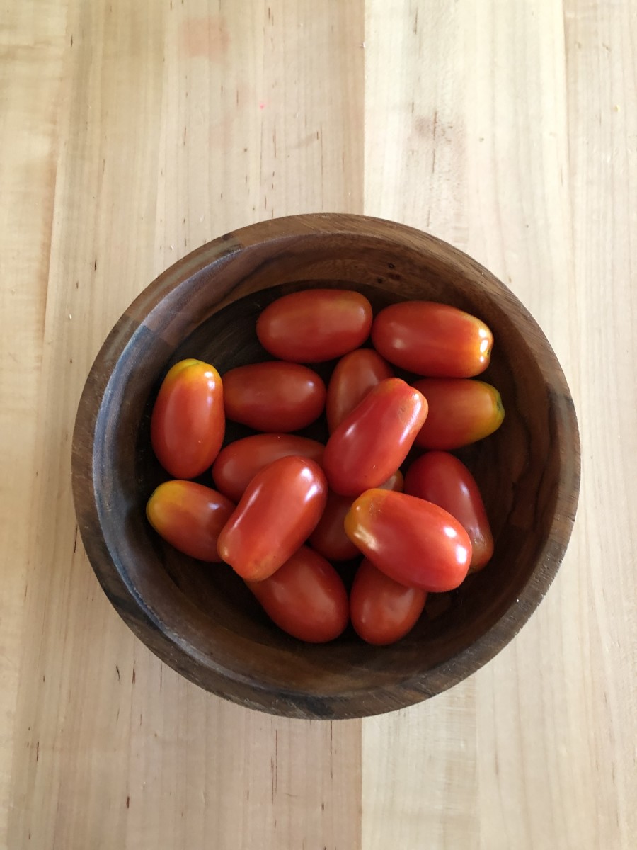 Semi-determinate. Contrary to its name, this semi-determinate vine tops out at about 5' tall and is less jungly come August than other small-fruited types. It doesn’t sacrifice any tastiness or productivity to its tame growth habit. Plants flower continuously and set fruit throughout the season for abundant harvests of delicious 15–22g shiny red grape tomatoes. Great in the field and a good choice for containers. Resists TMV, F(0) and TYLC.