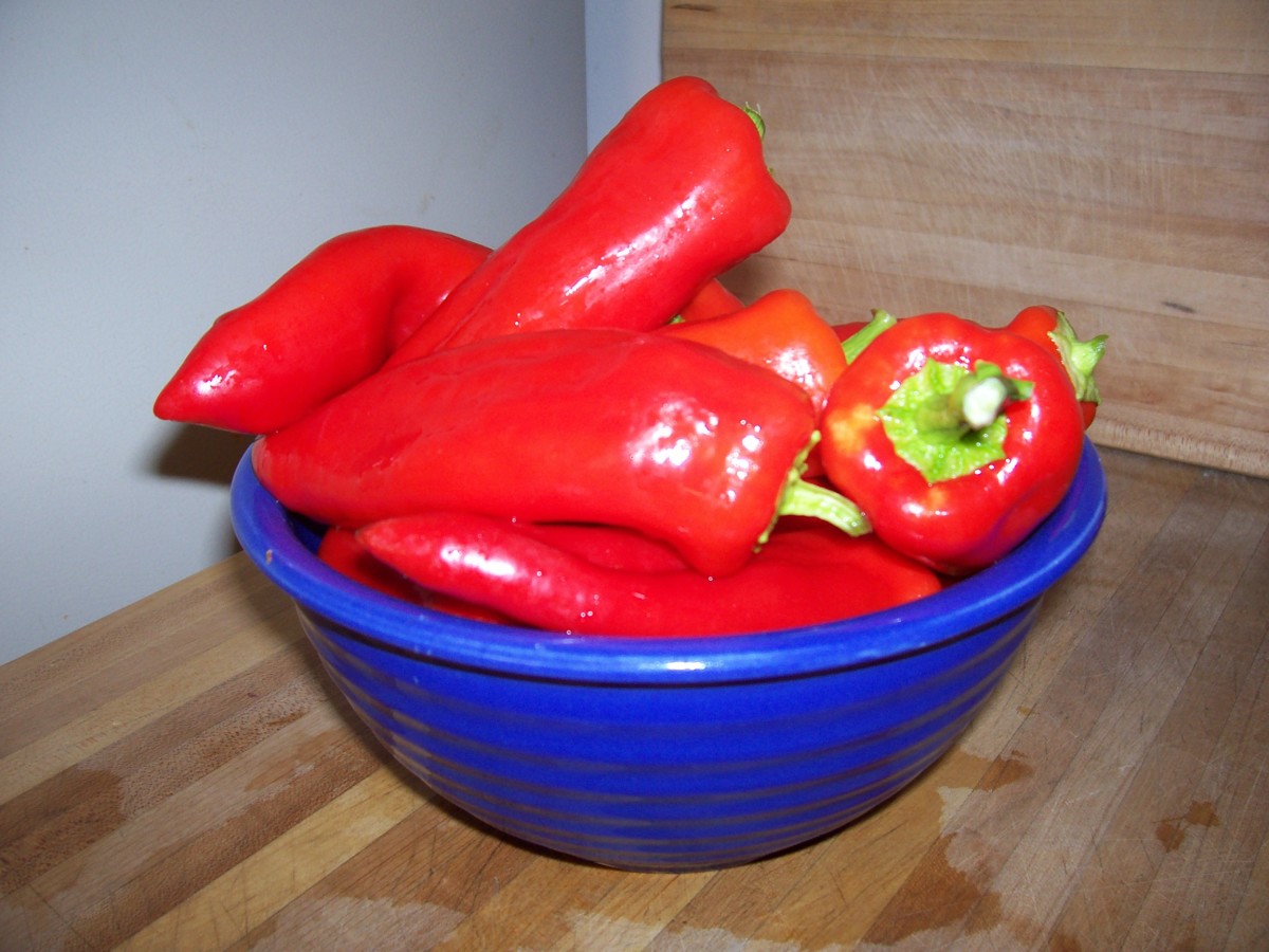 This pepper looked so much like Feher Ozon in our trials that we got to wondering if it was also a paprika pepper. Well, it turns out any pepper can make paprika. Hot peppers make hot paprika, sweet peppers make sweet paprika and if you smoke the peppers when you dry them, you get smoked paprika. Karlo is semi-hot and semisweet for the perfectly balanced homemade paprika. The thick-walled light yellow to red fruits hold up well in roasting and in the traditional use as a stuffing pepper. The beautifully shiny pointed 3½–5" fruits, at least a dozen per plant, have been reselected since the ’80s for cold tolerance and productivity from the old Garden City Seed variety of the same name.