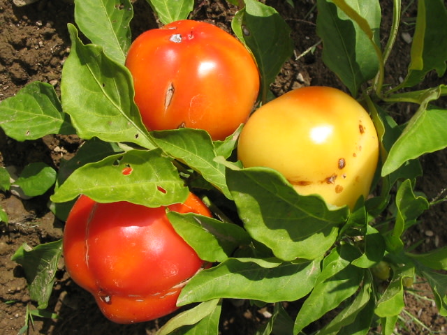 Also known as Golden Delicious Apple Pepper. From Hungary, a Fedco introduction to the U.S. Wini Noyes says it’s a good choice “for the pepper-challenged” to grow. Cheese peppers are flattened and with a soft sweet mild core. Shaped like wee Rouge Vif d’Étampes pumpkins, the 3" squat thick-walled 4 oz fruits were unlike anything we’d ever tried. We couldn’t stop munching these delicious summertime treats out of hand. Traditionally they are pickled whole after ripening from white to yellow to red. Named after the woman who maintained this heirloom seed stock. 115–125 seeds/g. 1997 Fedco introduction.