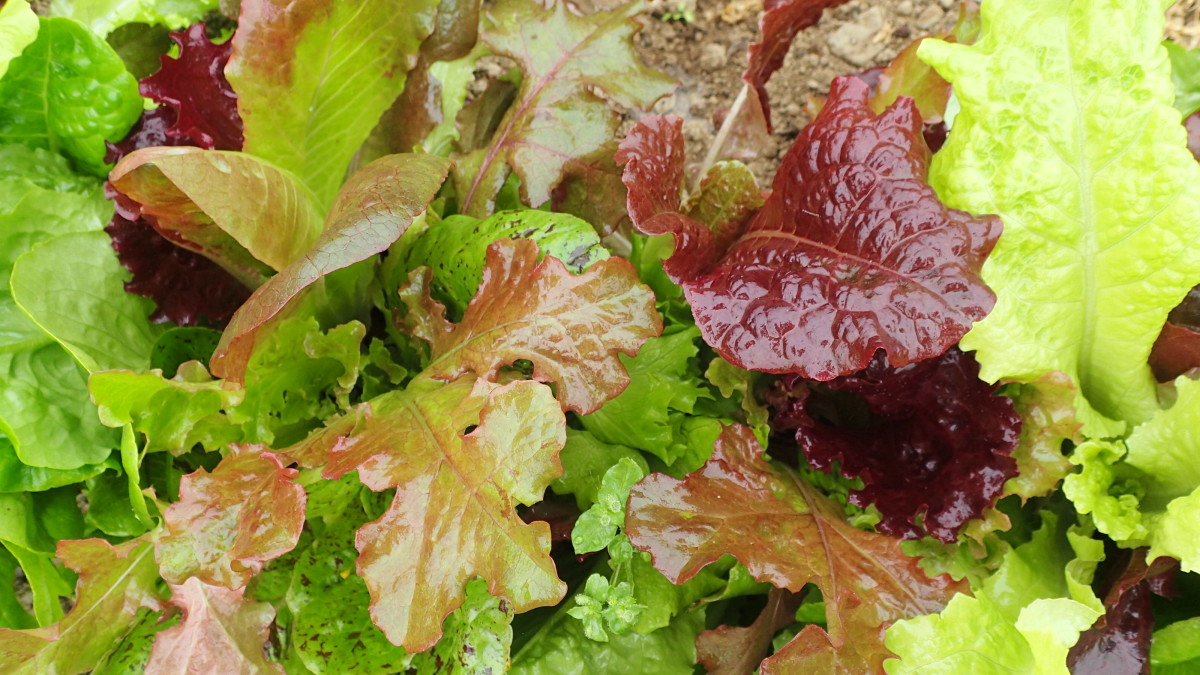 Light up your salad patch with contrasting colors and leaf forms! At least a half-dozen different lettuces, all suitable for cut-and-come-again culture. You can look up the specific varieties in your blend by lot number here.