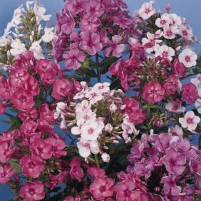 Phlox paniculata F-1 hybrid. Mix of white, pinks, reds and lilacs excellent for borders and cutflowers. Blooms from June till frost. Perennial.