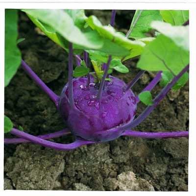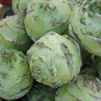 Brassica oleracea (gongylodes group) (38 days) F-1 hybrid. A nicely rounded head, with rampant health and vigor. Crunch crisp texture and mild nutty sweetness.