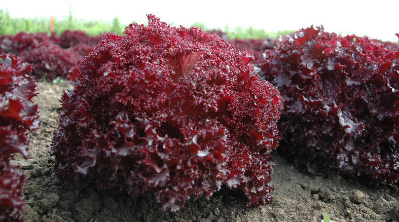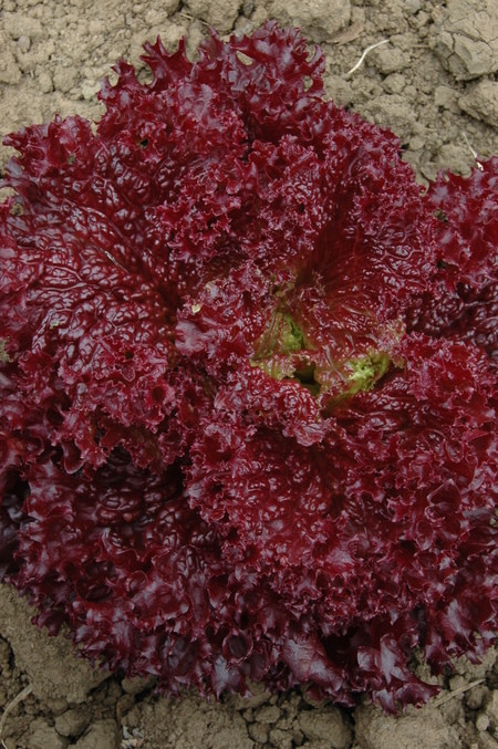 Its originator Frank Morton calls it a “distinctive little frizzlehead.” Di Vino stands out for its dark purple color that originated in its Merlot parentage. This compact beauty has ruffles and curls of vintage lollo, but a mildness uncharacteristic of deeply pigmented lollos. Its distinctive lack of bitterness allows the harvest to extend longer into summer than any other dark lollos we have tried.