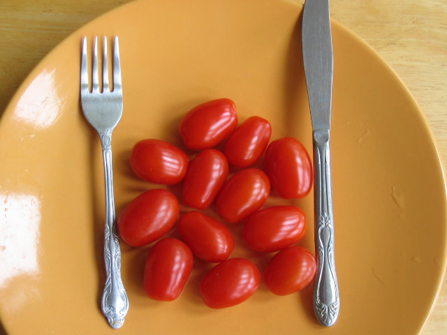 Indeterminate. Everyone in our taste test kept coming back for more of these super-crunchy red grapes. The consensus: these diminutive 5–8g sweet fruits can boast some tartness and complexity. They “taste like a red Sungold.” Unlike Sungold, they have some crack resistance, vulnerable only in cold wet weather. Starting very early, Lucia cranks out tons of bright red fruits great in salads, on pizzas or in sauces. Brix 7.5.