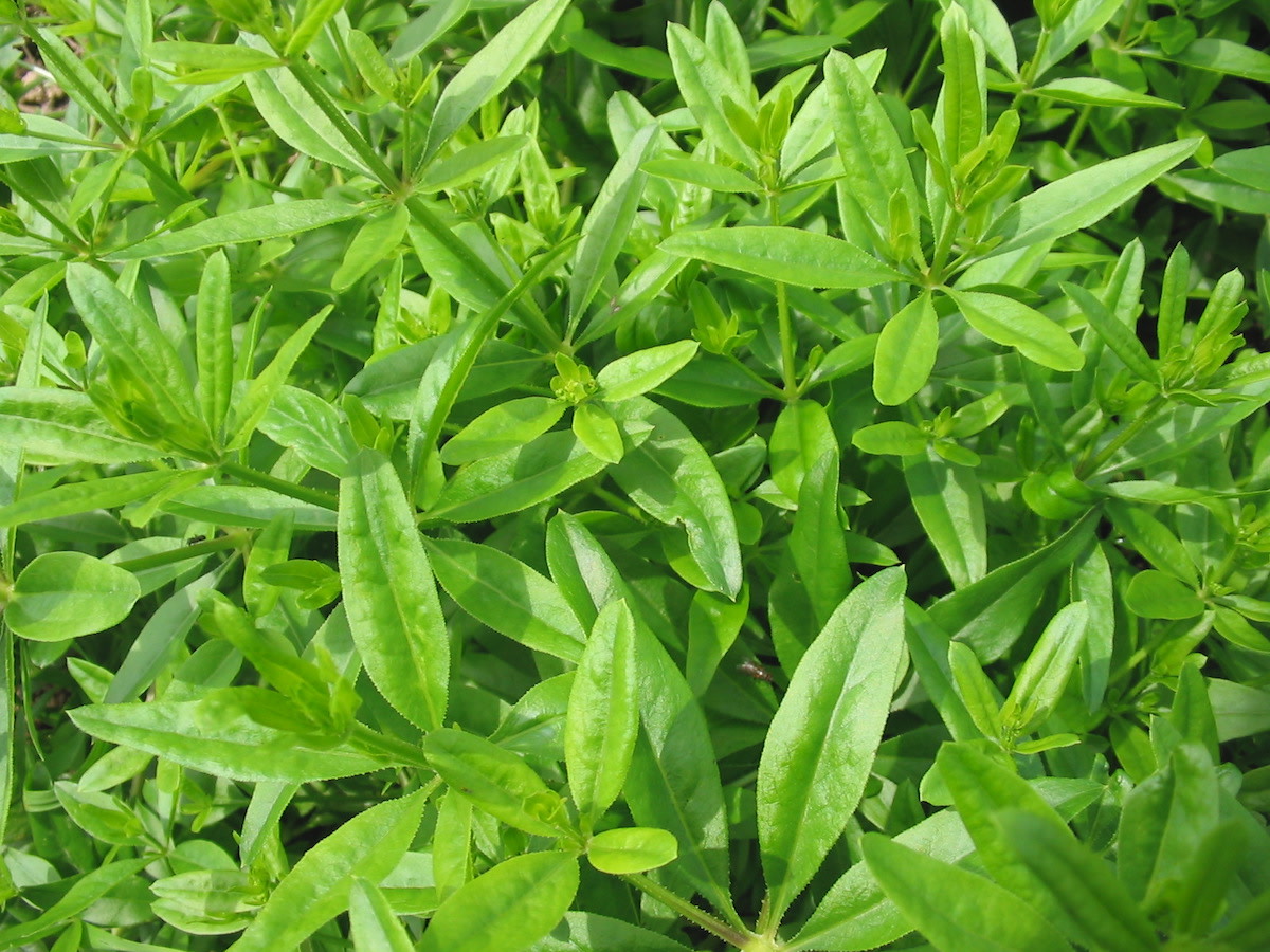 Perennial to Zone 5 if mulched heavily. Known as Common Dyer’s Madder. An ancient and excellent source of red dye, native to Southern Europe and Asia, the 4' plants have square stems, whorled leaves and pencil-slender roots. Roots go down 2'. Do not harvest them for three years. Then dig deep to get the tap roots, not the runner roots, and grind them to yield a wash- and light-fast red dye par excellence. Seed can take two weeks to germinate. Start inside in April in 70°+ temperatures and transplant 12-18" apart in loose soil after danger of frost. Mulch deeply and keep beds well weeded. Plants send out runners that could become invasive so dig out the runners periodically or keep the area around the beds mowed. ~45s/g.