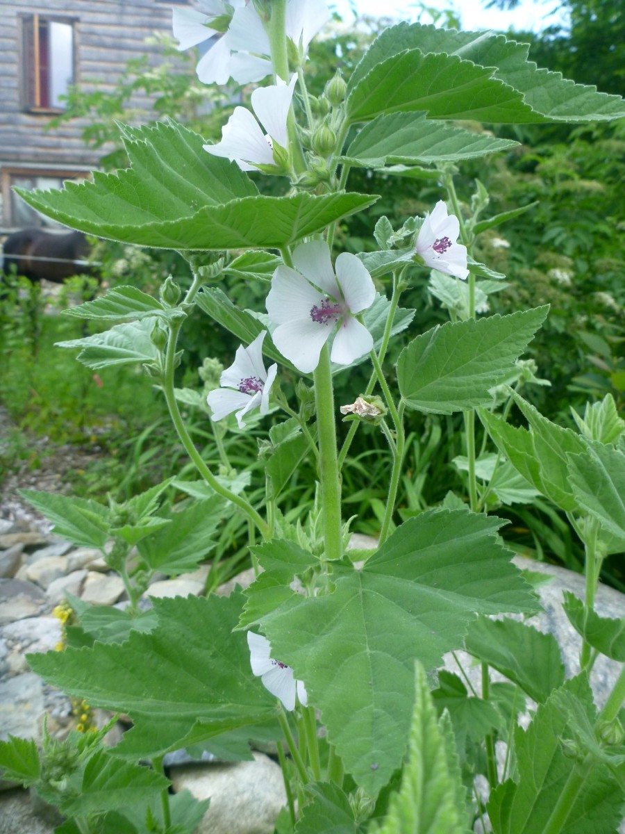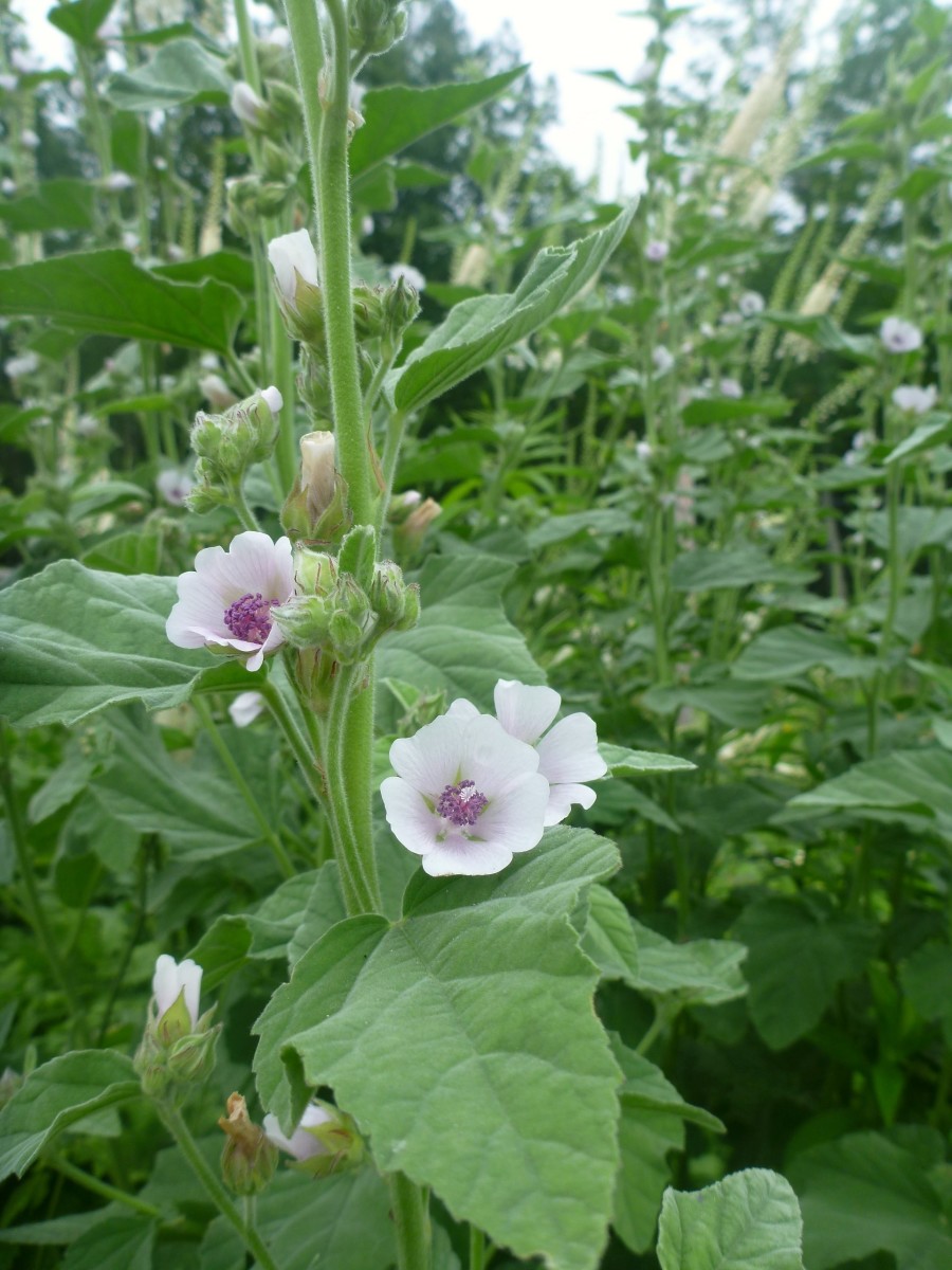 Perennial to Zone 4. Cousin to the hollyhock, used to soothe and soften irritated skin and membranes and to relieve stuck hacking coughs. Also mildly stimulates white blood cell production and relieves urinary tract infections and prostate problems. Enjoy the attractive flowers of this showy 4–6' plant through the summer or eat the velvety leaves in salads. All mallows contain soothing mucilage in the root, and marshmallow has the most, so it makes a great home-garden substitute for slippery elm. Harvest roots in autumn of the third year. For tea, steep roots in cold water for several hours rather than boiling. Plant in cool moist soil. Will self-sow. About 350 seeds/g.