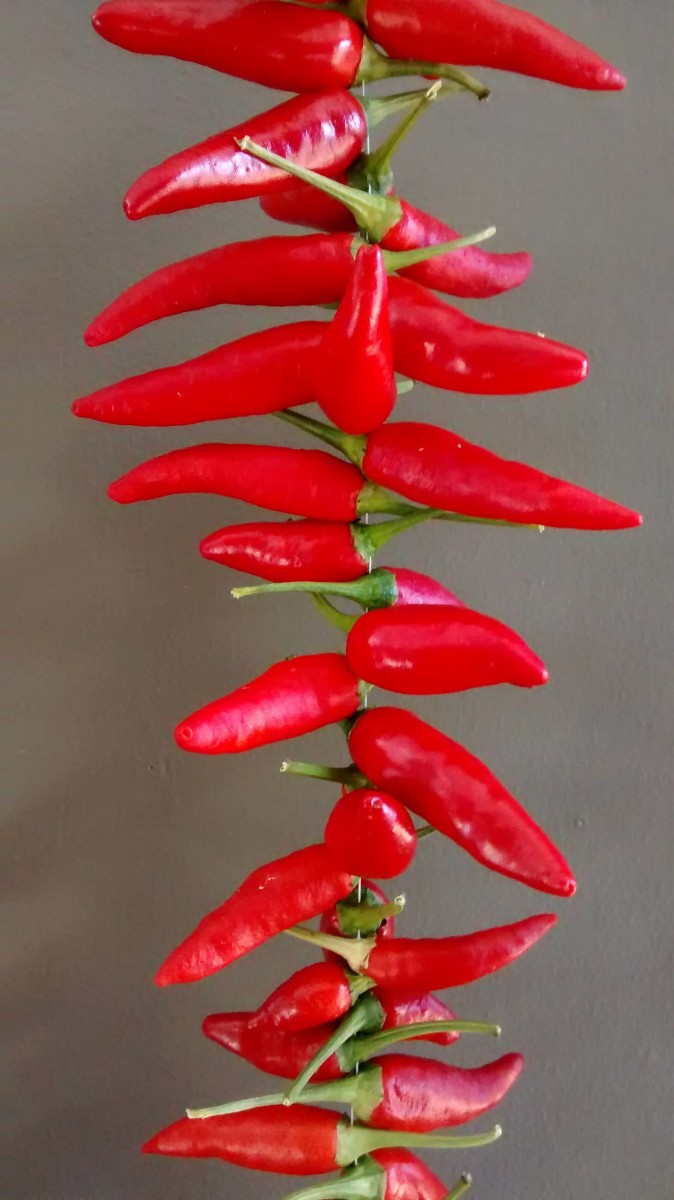 A product of Roberta Bailey’s many years of dedicated breeding work to create an open-pollinated selection of the hybrid Super Chili, whose parents include Hungarian Hot Wax and Hot Banana. Squat plants bear prolific upright fruit, 2" long, 1⁄3" across and ripening from pale green to deep scarlet. Bear well in cold damp weather, hot dry weather, sandy soils and heavy clay. Plants have finely cut lightweight leaves. Can be potted and overwintered, or used to make beautiful pepper wreaths. Plenty hot at 30,000-50,000 Scoville units. 2000 Fedco introduction.