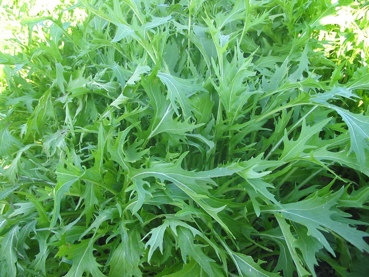 Recommended for northland salad enthusiasts, this vigorous heirloom Japanese mustard produces slender white stalks with deeply cut and fringed dark green leaves, not at all pungent. One planting could suffice for full-season production if watered in dry spells and kept cut, though a few will bolt in September. Many folks will prefer to make three or more succession plantings because the young leaves are the most tender. Biennial. Essential in mild mesclun and great for microgreens. Tested negative for BR and BL.