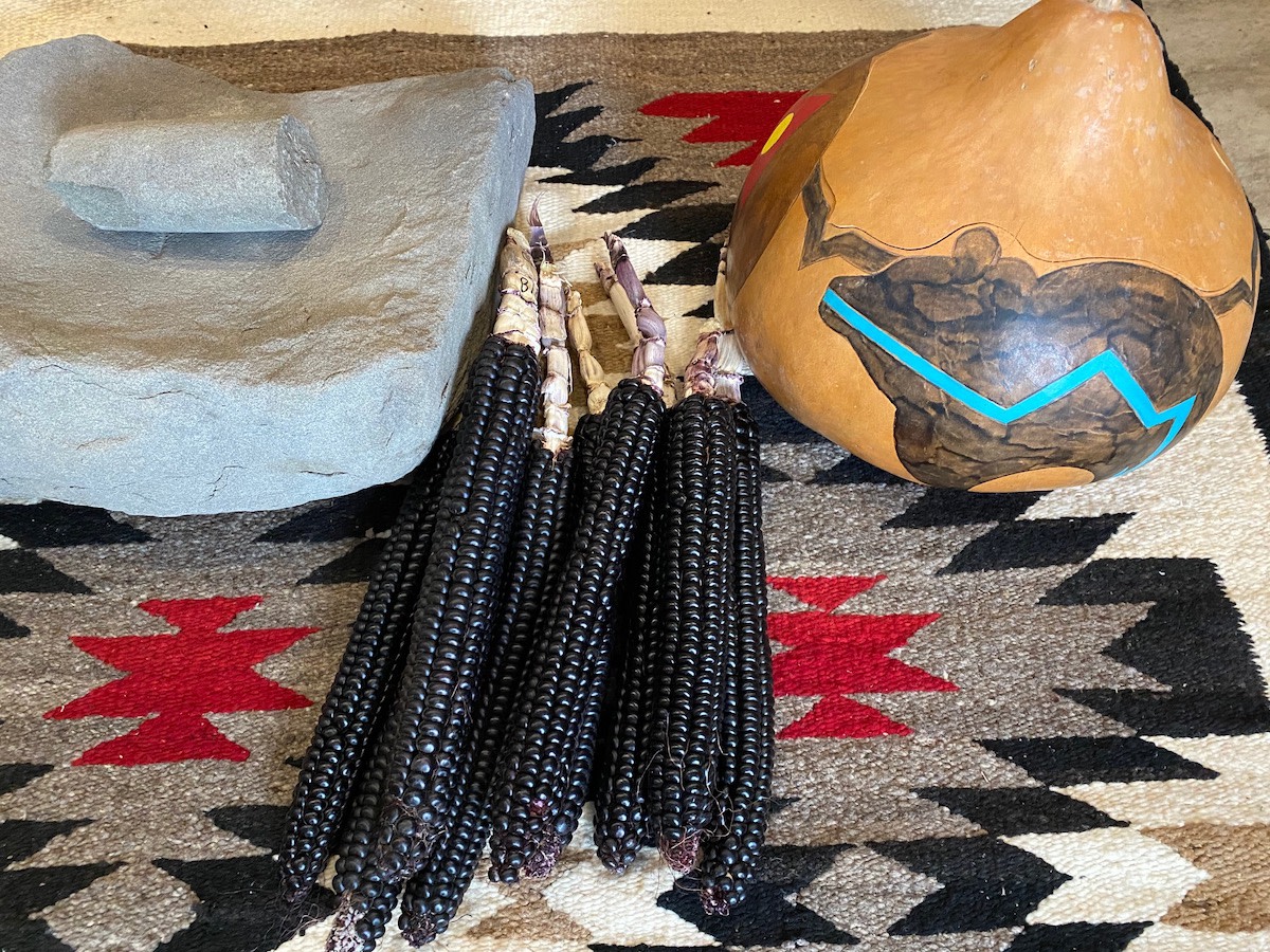 Flour corn. “The soft flour starch is ideal for every food purpose and makes the best cornbread,” says breeder Dave Christensen. Morado is Spanish for dark purple, and the popular South American drink chicha morada comes from an ancient Peruvian corn. But Andean corns are not adaptable to the North. Enter devoted corn breeder Dave Christensen, whose decades of work has been driven by a vision to create a grain with the highest antioxidant level possible. He’s been mostly selecting from Painted Mountain, to which he’s added an Arizona Diné corn that had two layers of pigmentation (typically corn has one), which increased the antioxidants. So this Montana Morado Maize is descended entirely from North American corns. Like Painted Mountain, it matures fast in Montana’s short season and stressful conditions. Grows similarly to Painted Mountain, though Morado is a little larger, with long thin cylindrical ears that are stunning as well as highly nutritious. Seed We Need®, 2022 Fedco introduction.