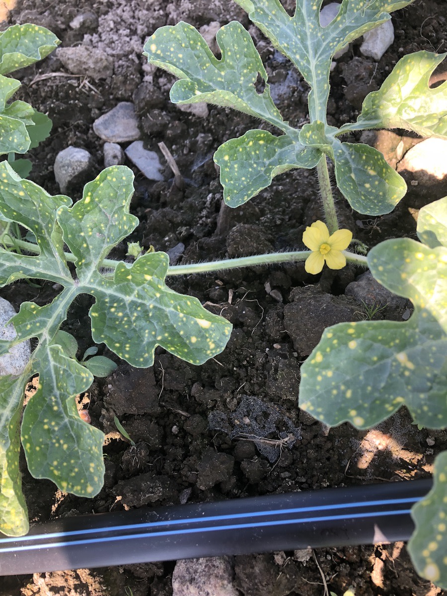 Spotted foliage, actually a product of a virus found in the breeding lines, looks unhealthy to the uninitiated. Because it needs a lot of heat to set fruit, it poses a challenge worthy of the Maine melon-grower’s mettle.