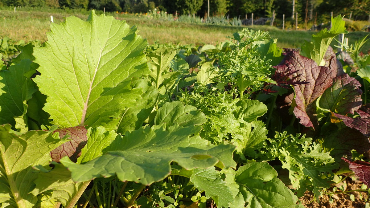 Our formulated blend of beautiful mustards. Includes greens, purples, pinks, streaked and frilled varieties. You can look up the specific varieties in your blend by lot number here. ~450 seeds/g.