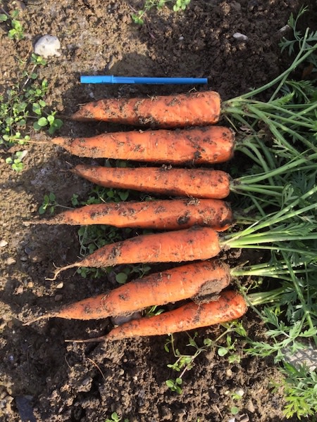 In our spring 2019 storage-carrot tasting, we were hoping to simply confirm newcomer Naval’s refined dominance over well-known Bolero. Then out popped uniform thick deep orange 9" Newhalls from their bin, looking as perfect when we stowed them away last fall. With eyebrows raised in wonder after crisp sweet juicy sampling, we realized we now had two candidates who easily danced Bolero right off the table. Newhall is a bulky continental Nantes-type like Bolero, but with much better long-keeping ability and flavor. The impressive cylindrical crack-resistant roots with a slight taper are matched by strong healthy tall tops. Intermediate resistance to ALTS, BR, TLS, PM, LR.