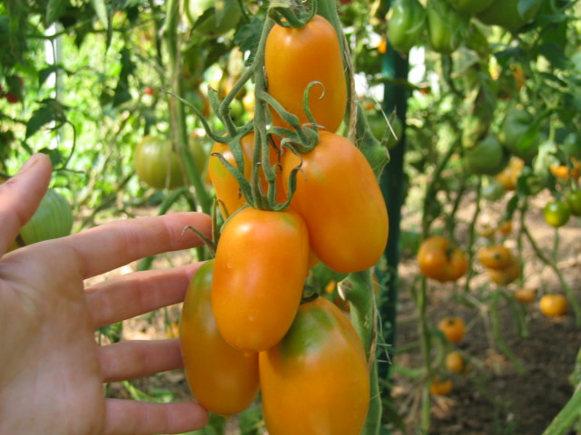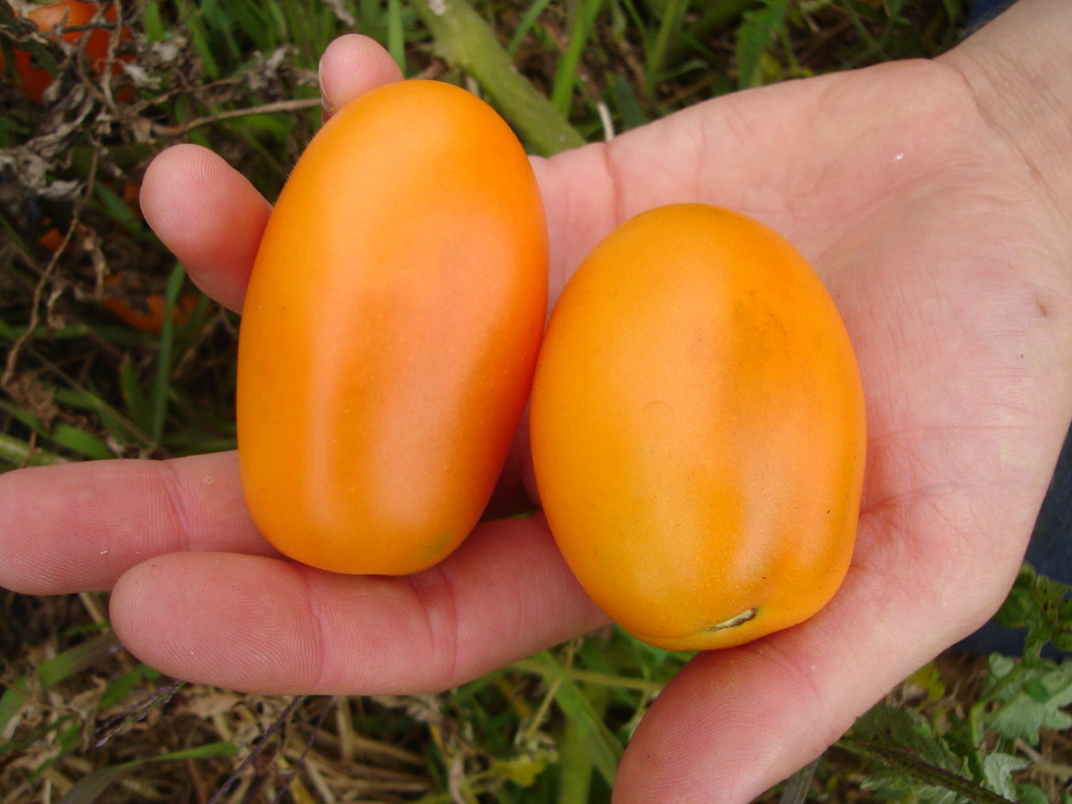 Its sprightly sweet flavor, reminiscent of Sungold but with more depth and diverse tones, makes an ambrosial sauce by itself and adds a vivid fruity complexity to any sauce with other tomato varieties. Erica Myers-Russo in CT grows it exclusively for drying. She claims it “makes the sweetest dried tomatoes ever.” Attractive cylindrical orange fruits 3–4" long average 4–5 oz. Susceptible to blossom-end rot. Originally offered by Moscow seedswoman Marina Danilenko in the 1996 Seed Savers Yearbook.