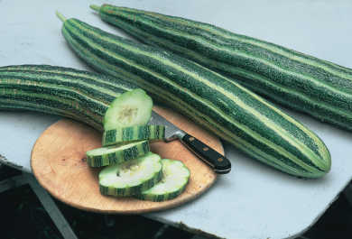 Culture like the melon it is, starting indoors in individual pots and transplanting into a low tunnel. Will grow up to 30" but best eaten at 8–18". Straighter if trellised. Never grew well on CR’s central Maine clay, but a prolific producer in his sandy Colrain, MA, soil, beginning as early as July 26 one warm, dry season. About 24 seeds/g