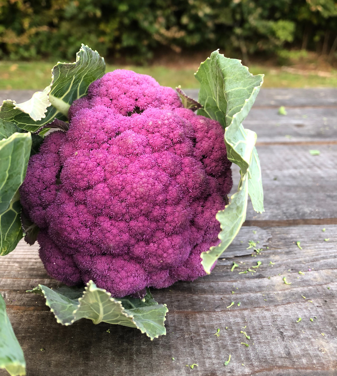 This super early deep purple cauliflower with tight curds will start forming heads before any other purple around. Nearly as dark as Grimace and more purply than the People Eater. A perfect complement to an early white like Charming Snow; prepare them together for a festive early autumn side dish (or main dish!) If you’ve had success with spring-planted cauliflower, Purple Moon might perform for you in warmer-weather harvests. But like other cauliflowers, it does best for a fall harvest. Tested negative for BR and BL.