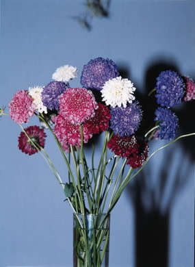 Annual. These quilly beauties are perfect for cuts, each 2" bloom is a rounded mass of tiny florets on a long wiry stem. Harvest when blossoms are almost fully open. Also excellent for drying. Formula mix is nicely balanced, featuring purple, lavender, red, pink, white and almost-maroon. ~150 seeds/g.