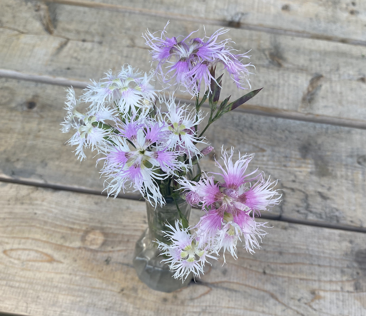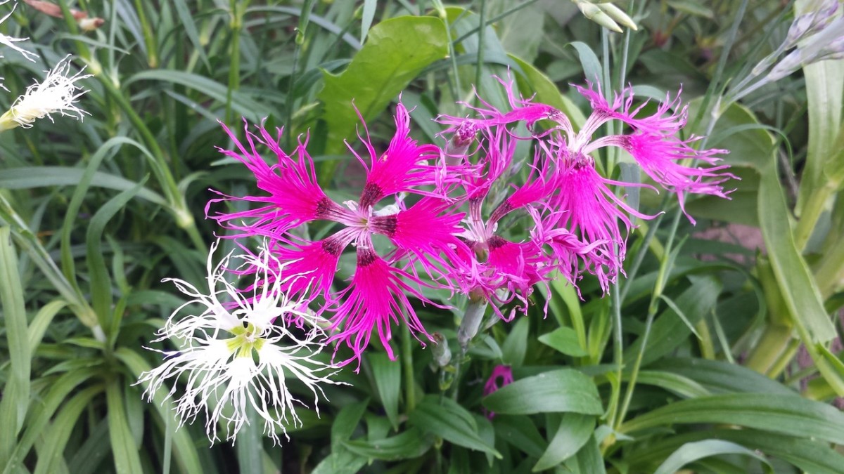 Perennial to Zone 3. Rainbow Loveliness has fragrance: glorious, heavenly, sinfully delicious and intoxicatingly jasminy. Such scent, often bred out of modern hybrids, is the primary attribute which gives Dianthus its deserved reputation among avid fans. Neither do their looks disappoint: a bit out of this world, like terrestrial sea anemone, with segmented pentagon eyes out of which wave deeply fringed blooms, creating a wispy feathery effect. Mix of carmine, white, pink and bicolored 11/2" blooms in loose clusters on tidy 14" tall mounds of fine foliage. Blooms in June; shear back spent flowers for fall rebloom. About 1,200 seeds/g.