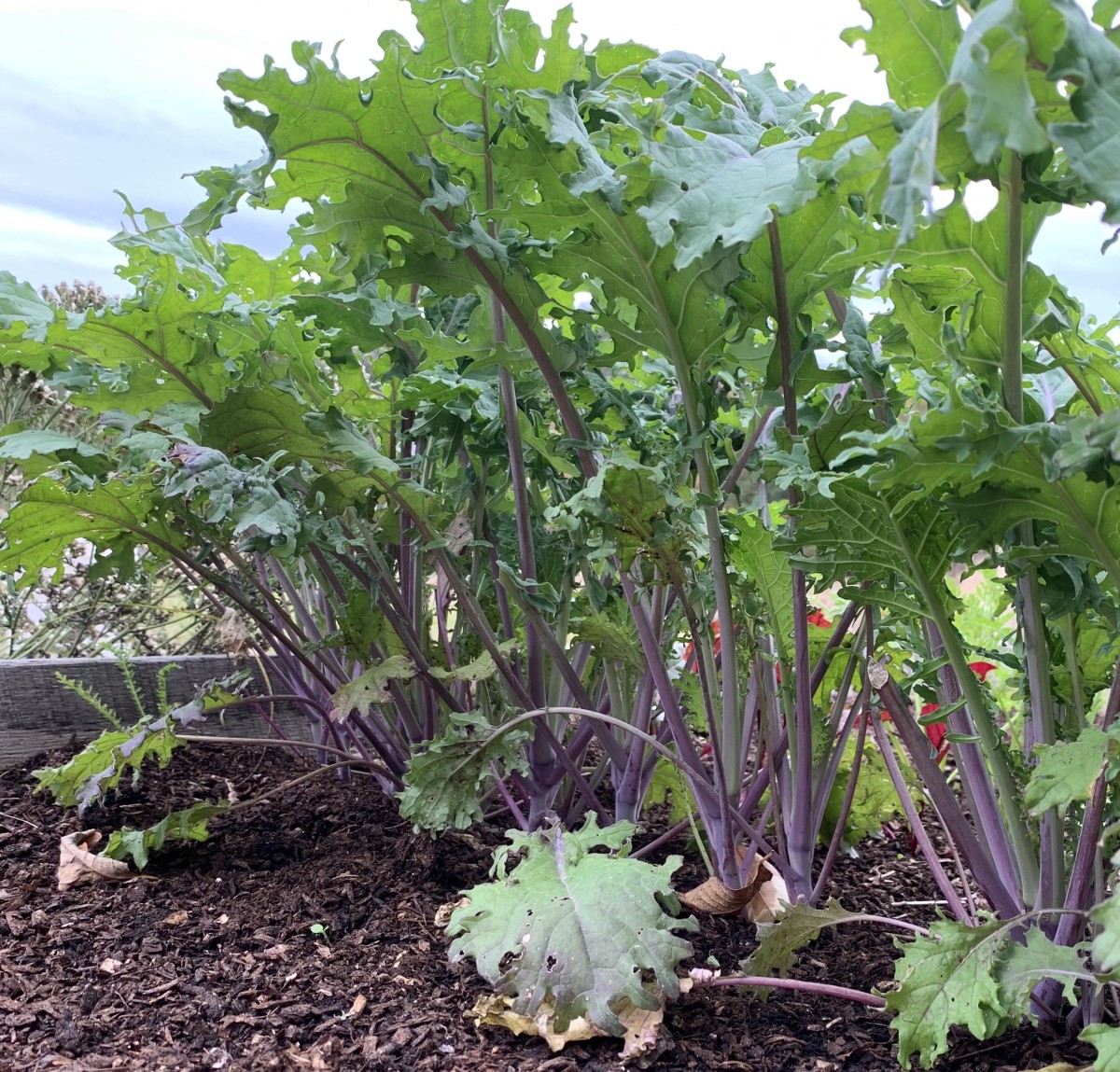 Called Buda Kale by Fearing Burr in 1863, Ragged Jack by Vilmorin-Andrieux in 1885, and Communist Kale in 2006 by workers at Darthia Farm in Gouldsboro, Maine. Russian traders brought this Siberian heirloom to Canada in the 19th century. It has undergone a rousing revival in recent years. Vigorous edible landscape plant a big hit for its tenderness and delicate flavor. Its oakleaf foliage colors after fall frosts. Use soon after picking, or chill leaves in cold water; otherwise wilts quickly. Red and purple veining changes to dark green when cooked. Also a popular variety for microgreens. Tolerates outside temperatures of 14° double-covered under row cover.