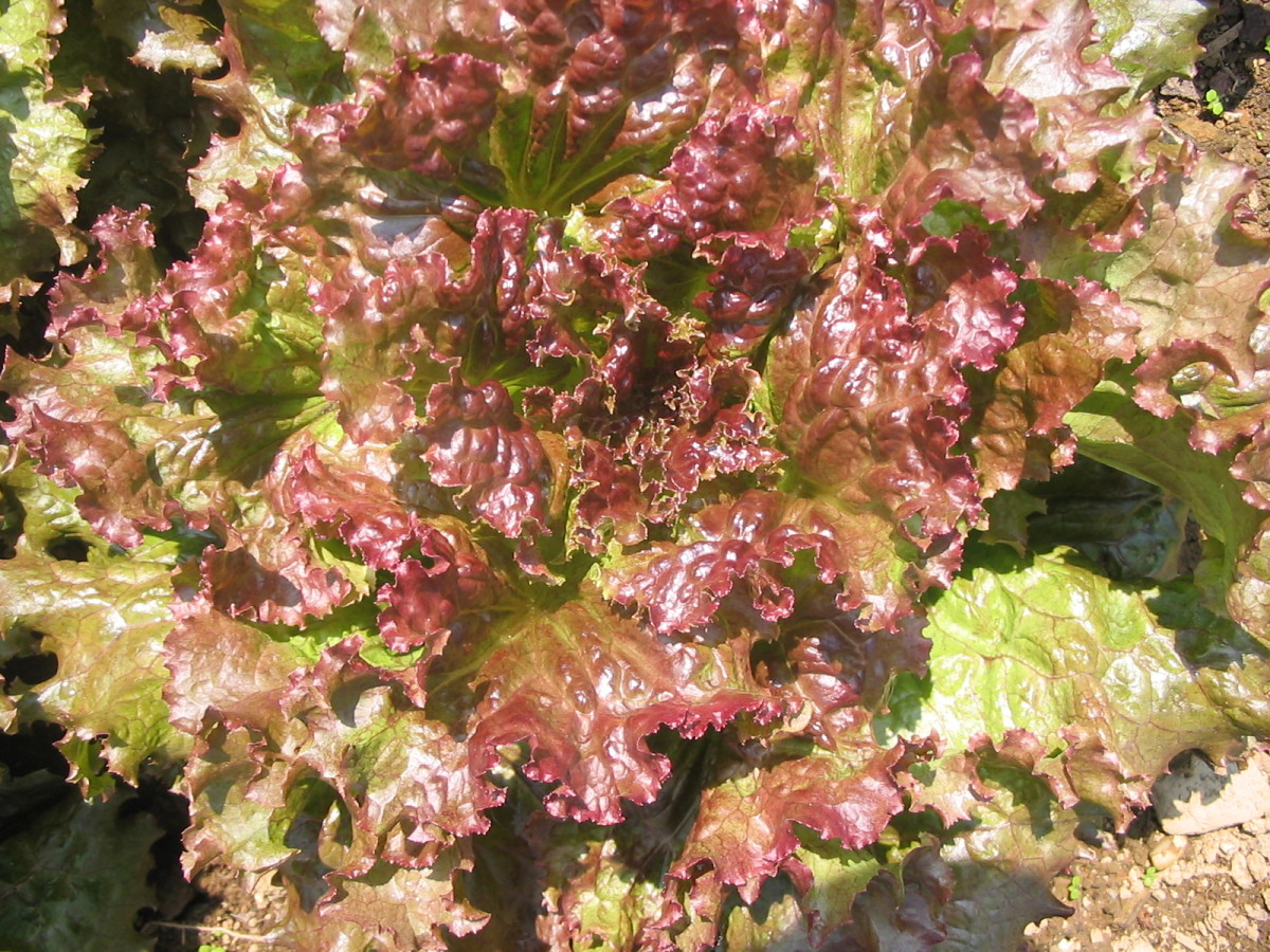 This 1985 AAS winner has become synonymous with red leaf lettuce. An attractive large plant with purplish red-splashed rosettes serrated with bubbled frills, Red Sails delivers lightly crunchy lobes with good melting texture. Ideal for home use and wholesale markets. Red Sails is slow to become bitter or bolt, even in heat. Reaches full size at 12–16", but can be harvested at 10" for a “one-cut” type head. Handle with care, as brittle midribs break easily during washing and packing. Highest rated of 13 lettuces for vigor in OSU trial.