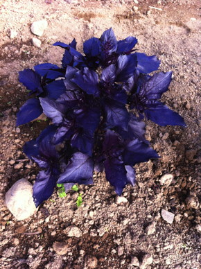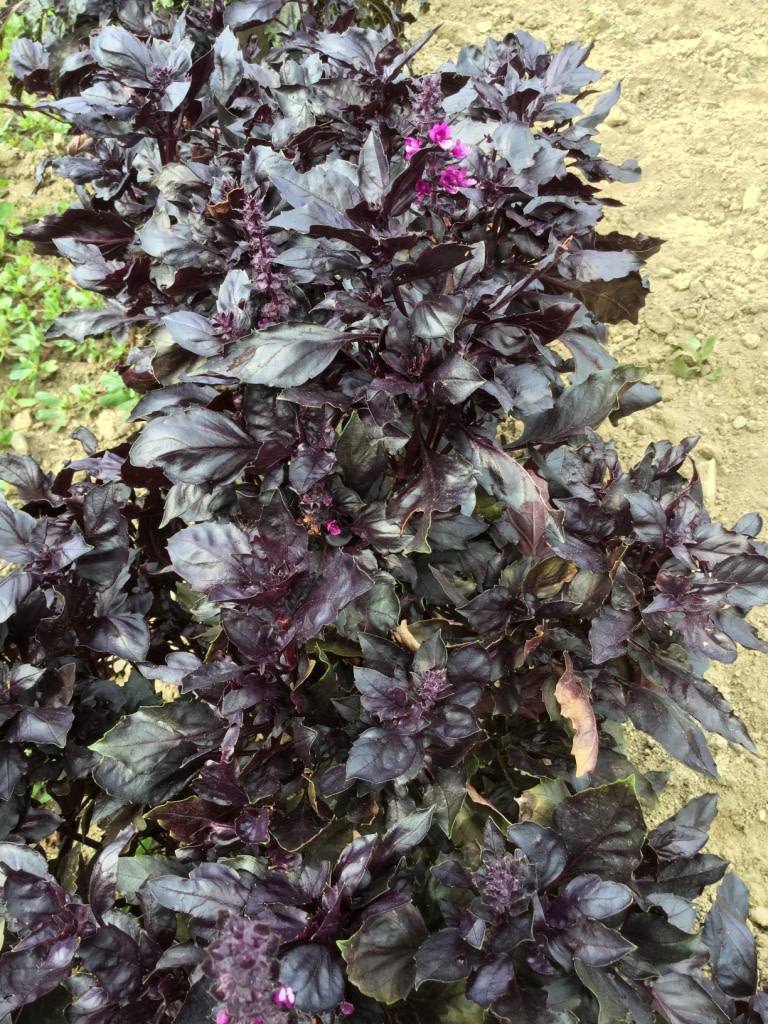 Annual. This lustrous purple basil lures you from across the garden with its broad dark lightly ruffled gently serrated leaves wafting a swooning aroma of allspice, nutmeg and light musk. Noting the 12–14" stature and well-branched uniform habit, you bend to pluck a tender leaf. Savory with mild pungency, the flavors dance on your tongue. As weeks follow, Round Midnight slowly reveals spikes of purple flowers. Seduction complete. Tested for fusarium.