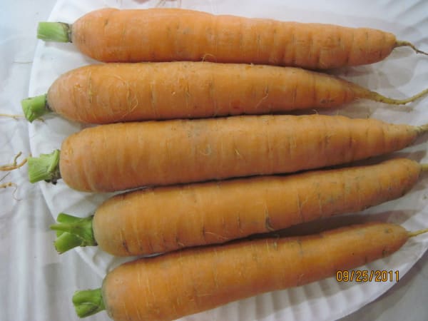 This old-time favorite Nantes variety with bright orange roots averaging 6–7" proves that good quality is not always expensive. Sweet with a small dark core. Very good for storage, too. Far and away our best-selling carrot.