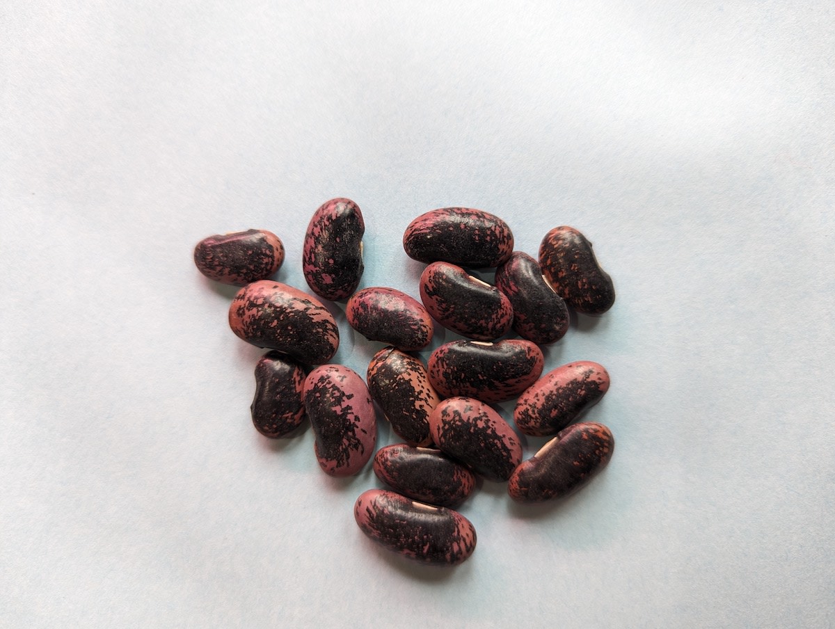 Climbing beans often grown as ornamentals for their brilliant scarlet blossoms that attract hummingbirds. Need trellises, fences or poles; will grow to 10–12', perfect for shading a porch. Can be eaten either as snap or shell (95 days) beans. Gorgeous purple and black mottled seeds may be the most exquisite in our catalog. “There is nothing like the face of amazed surprise when a child opens the pods from these plants,” reports Anne Elder. Heirloom variety grown as early as 1750 by colonists and in 1791 for Thomas Jefferson. About 20 seeds/oz.