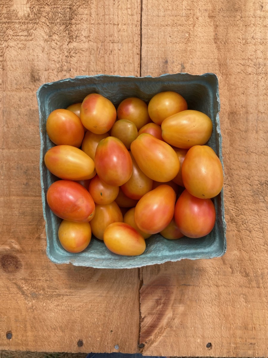This tomato is the breeding work of Rutgers researchers Peter Nitzsche and Tom Orton, who wanted to combine desirable traits from two very different tomatoes. They sought the shape and crack-resistance of a high-performing commercial red grape, and the sweetness, flavor and beauty of a bicolored cherry. Since red coloration is a dominant trait in tomatoes, getting the bicolor took years of meticulous backcrossing and hand pollination. After a decade of hard work, they nailed it. (Splat!)