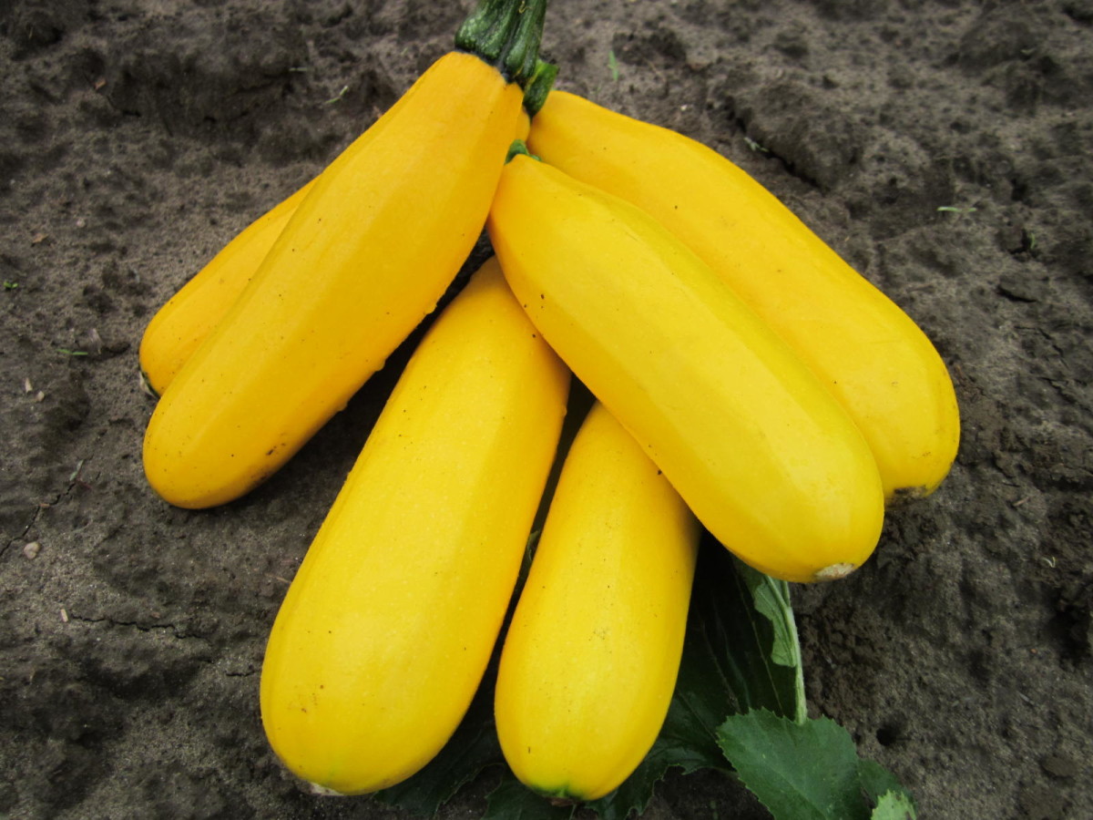 A beautiful golden straight-sided cylindrical zucchini, relatively free of green tips, with open plant habit for easy harvesting. Averaged 17 baby fruits per plant or 6 mature fruits. Rated “very early” in the 2006 OSU trial. Showed some drought stress in early July 2012, producing misshapen fruits, but bounced back nicely. Resistant to PM.