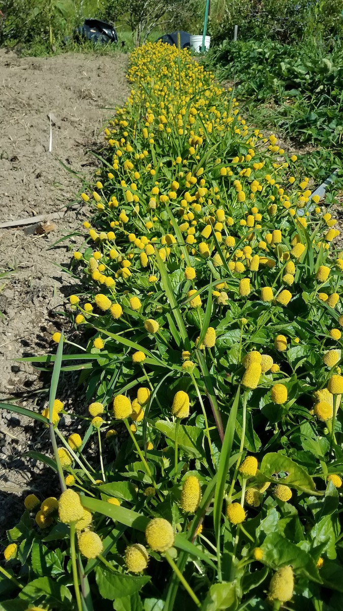 Annual. Known to herbalists as the Toothache Plant. Spilanthes’ tingling and mouth-numbing properties appear rapidly and last a while. Also known as Salad Cress, it was introduced from Brazil to North America in the 1860s and listed as Para Cress in seed catalogs a century ago. Use its bronzy-purple leaves in salad or chew the leaves and flowers for temporary pain relief. Its immune-stimulating properties are giving it a wider audience. Highly frost-sensitive. Used as a ground cover in the south, it adds unusual beauty with its low growth habit and its cute yellow flowers with rayless red-orange centers. Makes a colorful border planting in fertile moist soil. ~3,000 seeds/g.