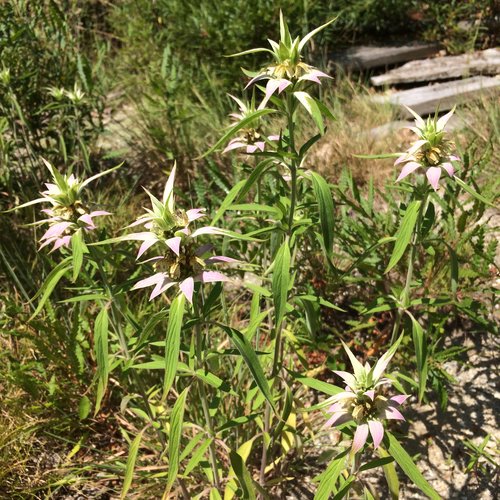 Perennial to Zone 3, but should be treated like a self-sowing annual. Native to the Northeast. A whimsical beauty that boasts complex blossoms topping 2' stems in light pink, green, beige and maroon. This native plant has many culinary and medicinal uses as well. Traditionally used to treat stomach ailments, kidney disease, colds, pain and inflammation. Its oregano-like aroma and flavor is lovely for tea and seasoning. Great for interplanting with trees and shrubs, or as an addition to ornamental and herb gardens. Surface sow in spring; we recommend you start these tiny seeds in pots, but direct sow if you must. Prefers full sun to part shade and well-drained soil. Tolerates drought and poor soil, including sand or gravel. Leave spent flowers to allow for self-seeding.